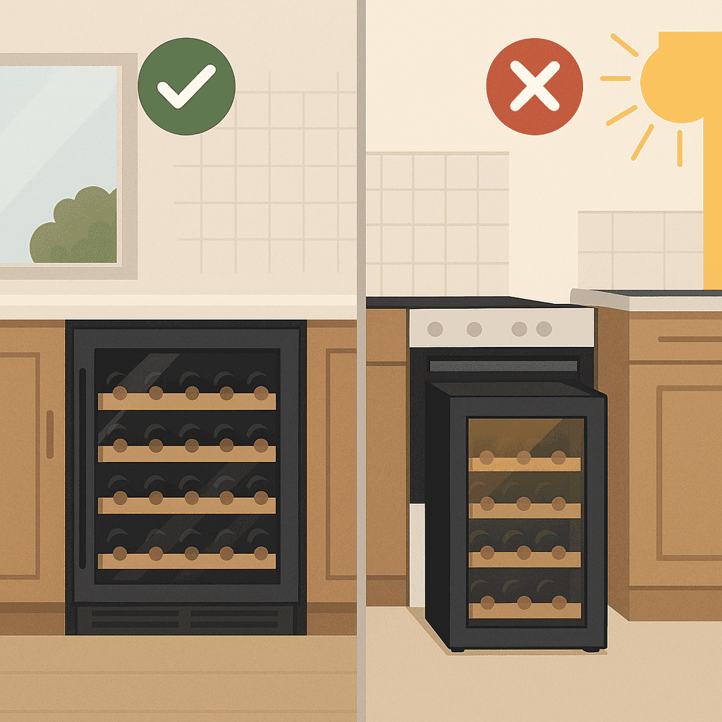 Avoid placing coolers near heat sources, in direct sunlight, or in unconditioned spaces like garages where temperature fluctuations stress the cooling system. Vibration from nearby appliances can disturb sediments, so maintain distance from dishwashers and washing machines.